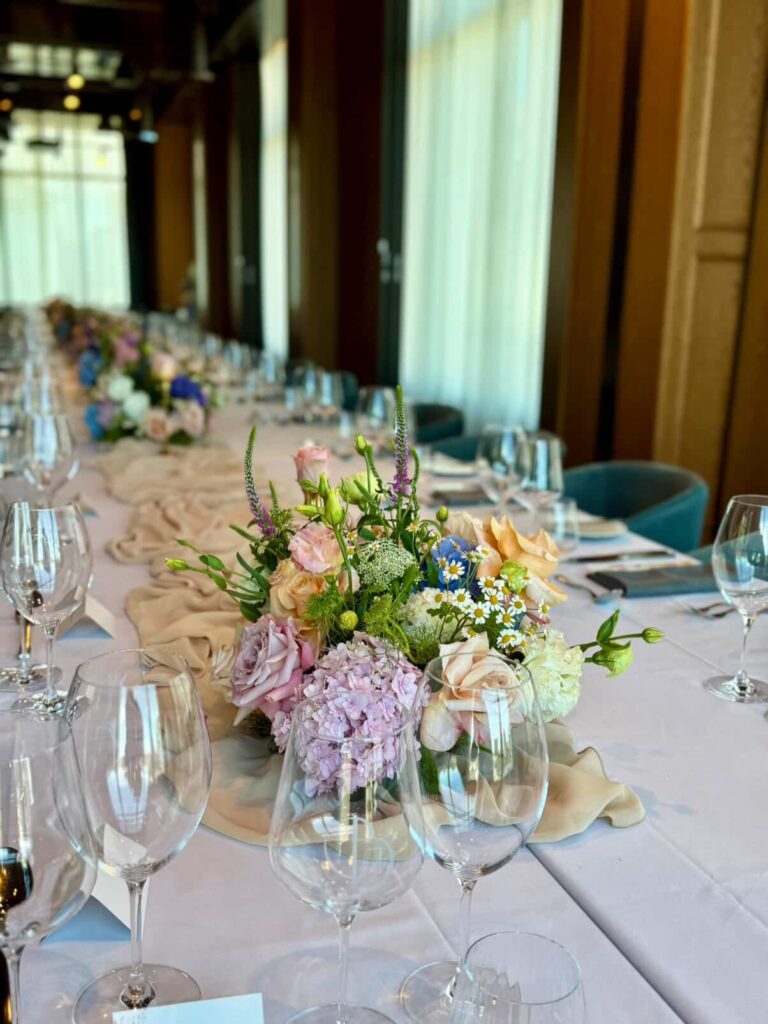 Every floral arrangement we deliver is designed with care — your palette, your mood, your vision. From bridal bouquets and ceremony arrangements to centrepieces and hanging installations, the flowers are always part of the whole picture, never an afterthought.